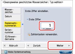 Geben Sie die erste Ziffer ein→ Berühren Sie die Taste [Weiter].
