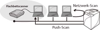 Damit Sie die Netzwerk-Scanfunktion mit Ihrem imageRUNNER ADVANCE-System verwenden können, müssen Sie zunächst das mit dem System gelieferte Programm Color Network ScanGear installieren. Die neueste Version können Sie gratis von der Canon-Website herunterladen.
