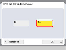 Vergewissern Sie sich wie folgt, dass [PDF auf PDF/A formatieren] auf 'Aus' gesetzt ist.