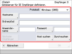 Legen Sie die einzelnen Einstellungen für den Ziel-Dateiserver fest → Bestätigen Sie durch Berühren der Taste [OK].