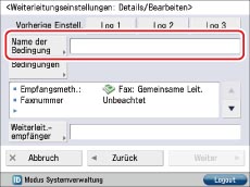 Berühren Sie die Taste [Name der Bedingung] → Geben Sie einen Namen für die Bedingung ein → Bestätigen Sie durch Berühren der Taste [OK].