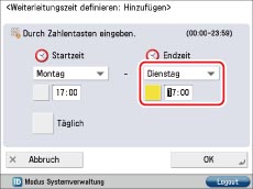 Wählen Sie unter <Endzeit> die Option [Dienstag] → Berühren Sie die Taste [