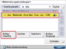 Wählen Sie die gespeicherte Weiterleitungsbedingung → Berühren Sie die Taste [Gültig/Ungültig].