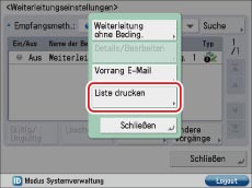 Zum Ausdrucken einer Liste der Weiterleitungseinstellungen gehen Sie folgendermaßen vor.