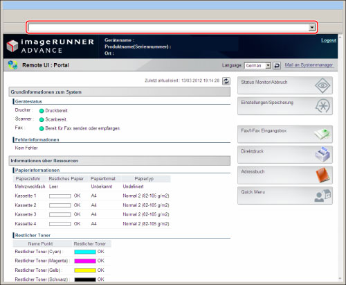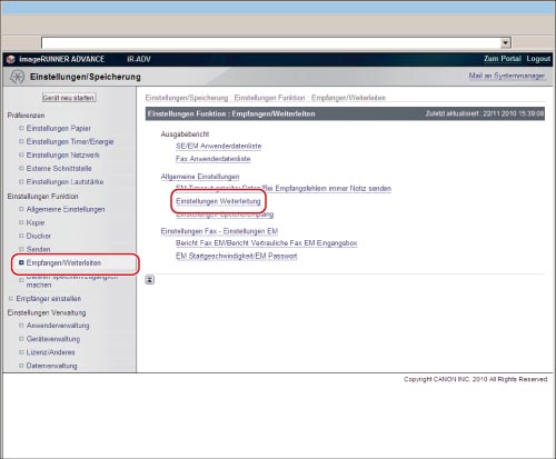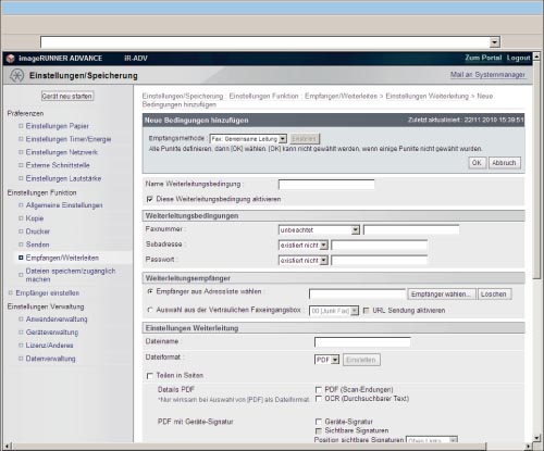 Die Weiterleitungseinstellungen können auch über das Remote UI vorgenommen werden.