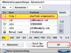 Wählen Sie den Computer der Verwaltungsabteilung als Empfänger aus → Berühren Sie [OK] → [OK].