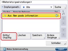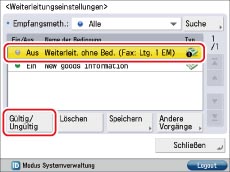 Wählen Sie die gespeicherte Weiterleitungsbedingung → Berühren Sie die Taste [Gültig/Ungültig], um die Weiterleitungsbedingung auf 'Ein' zu setzen.