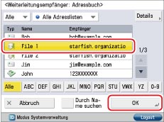Wählen Sie als Weiterleitungsempfänger den für Mitarbeiter B eingerichteten Freigabeordner → Bestätigen Sie durch Berühren der Taste [OK].