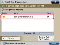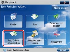Wählen Sie auf dem Hauptmenüdisplay die Option [Fax/I-Fax Eingangsbox].