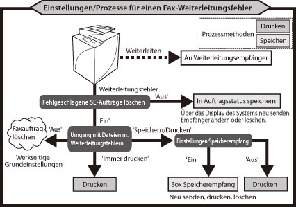 Wenn ein Weiterleitungsfehler auftritt, verarbeitet das System das Fax wie nachstehend beschrieben.