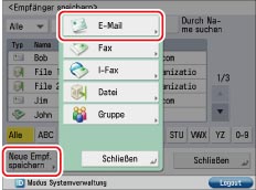 → [Empfänger definieren] → [Empfänger speichern] → [Neue Empf. speichern] → [E-Mail].