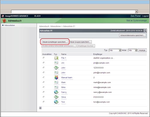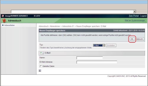 Klicken Sie auf [Neuen Empfänger speichern]. Ein Bildschirm zum Speichern neuer Empfänger wird angezeigt.