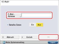 Geben Sie unter [E-Mail-Adresse] eine E-Mail-Adresse ein → Bestätigen Sie durch Berühren der Taste [OK].