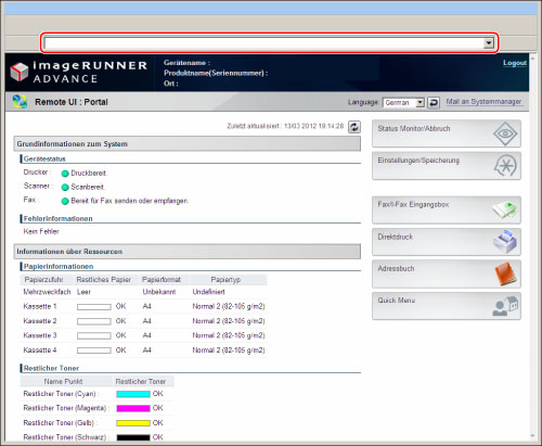 Sie können diese Einstellungen auf einfache Weise mittels des Remote UI durchführen.