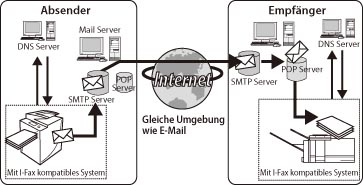Die Normen für I-Fax sind durch ITU-T (International Telecommunication Union - Telecommunication Standardization Sector = Internationale Fernmeldeunion - Sektor für Telekommunikationsnormung) definiert. Senden und Empfangen mit Systemen anderer Hersteller ist möglich, solange die Geräte mit ITU-T konform sind. Das imageRUNNER ADVANCE ist konform mit der Empfehlung T.37 (Verfahren für die Übertragung von Faxdaten durch Speicherung und Weiterleitung im Internet).