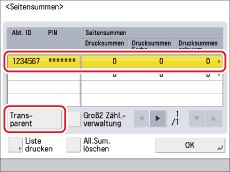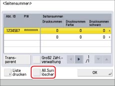 → Berühren Sie nacheinander die Tasten [Einstellungen Verwaltung] → [Anwenderverwaltung] → [Verwaltung per Abteilungs ID] → [Seitensummen].