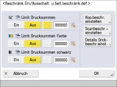 Wenn der Zähler den Grenzwert erreicht, kann die betreffende Funktion erst wieder verwendet werden, wenn die Funktion Seitenbeschränkungen deaktiviert oder der Grenzwert geändert wird.