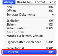 Wählen Sie im Menü [Ablage] der Anwendungssoftware, die Sie zum Drucken des Dokumentes verwenden, die Option [Drucken].
