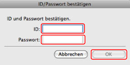 Geben Sie im Dialogfeld [Einstellungen für ID/Passwort] die ID und das Passwort ein, die Sie in Schritt 4 unter "Einrichten des Systems" gespeichert haben.