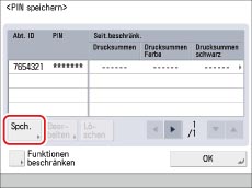 Berühren Sie nacheinander die Tasten [Ein] → [PIN speichern].