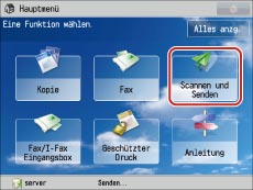 Legen Sie die Originale auf das Vorlagenglas oder in den Einzug → Berühren Sie im Hauptmenü die Taste [Scannen und Senden].