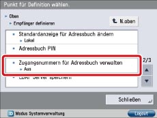 → [Empfänger definieren] → [Zugangsnummern für Adressbuch verwalten].