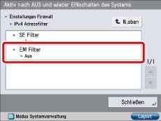 Berühren Sie nacheinander die Tasten [IPv4-Adressfilter] → [EM Filter].