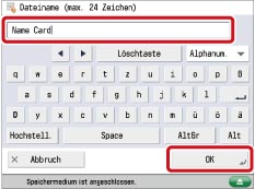 Geben Sie einen Namen für die gescannten Daten ein → Berühren Sie [OK].