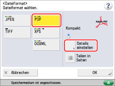 Wählen Sie [PDF] → Berühren Sie die Taste [Details einstellen].