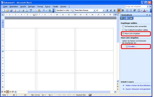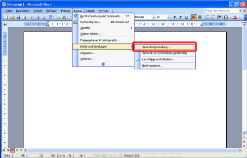 Öffnen Sie in Microsoft Word ein neues Dokument → Klicken Sie auf [Extras] → [Briefe und Sendungen] → [Serienbrieferstellung].