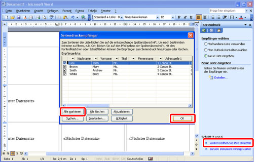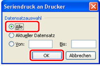 Klicken Sie bei [Datensatzauswahl] auf [Alle] → Klicken Sie auf [OK].