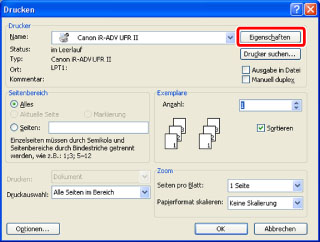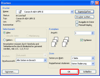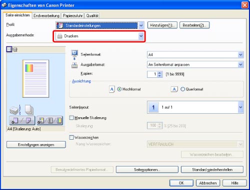 Wählen Sie bei [Ausgabemethode] die Option [Drucken].