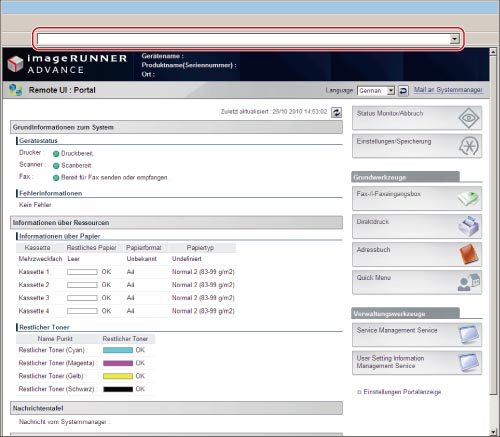 Die Portalseite von Remote UI wird angezeigt.