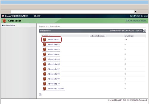 Klicken Sie im Adresslistenfenster auf [Adressbuch] → [Adressliste 01].