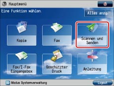 Berühren Sie im Hauptmenü die Taste [Scannen und Senden].