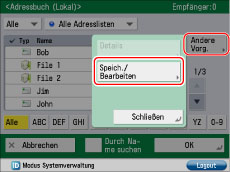 Berühren Sie nacheinander die Tasten [Andere Vorg.] → [Speich./Bearbeiten].