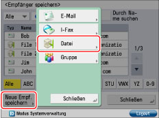 Berühren Sie nacheinander die Tasten [Neue Empf. speichern] → [Datei].