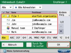 Wählen Sie einen registrierten Empfänger → Bestätigen Sie durch Berühren der Taste [OK].