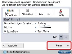 Überprüfen Sie die Einstellungen → Berühren Sie die Taste [Weiter].