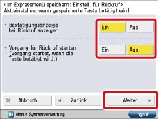Geben Sie die Rückrufeinstellungen für die zu speichernde Taste an → Berühren Sie [Weiter].