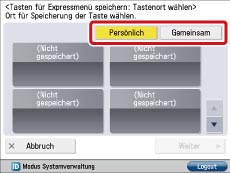 Wählen Sie die Taste [Persönlich] oder [Gemeinsam] → Berühren Sie die belegte Taste.