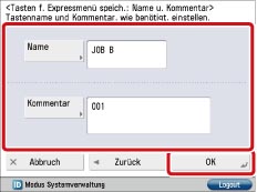Geben Sie einen Tastennamen und einen Kommentar ein → Bestätigen Sie durch Berühren der Taste [OK].
