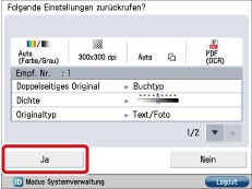 Überprüfen Sie die Einstellungen → Bestätigen Sie durch Berühren der Taste [Ja].
