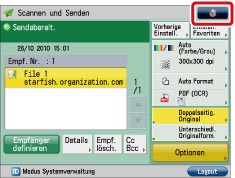 Legen Sie die Originale auf das Vorlagenglas oder in den Einzug → Berühren Sie im Hauptmenü die Taste [Scannen und Senden].