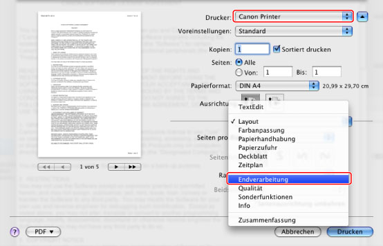 Das Aussehen der Bildschirmanzeige richtet sich nach der Art und Version des Druckertreibers und der von Ihnen verwendeten Anwendung.