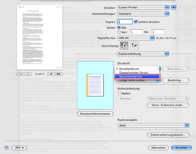 Wählen Sie unter [Druckstil] die Option [Broschürendruck].