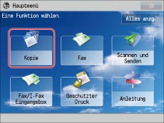 Wenn das Hauptmenüdisplay nicht angezeigt wird, berühren Sie die Taste [Hauptmenü].
