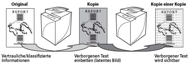 Der verborgene Text wird als Schutz gegen unbefugtes Kopieren und Informationspreisgabe sichtbar, wenn das ausgegebene Dokument (Original) kopiert wird.