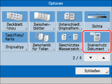 Berühren Sie die Taste [Optionen] → [Scanschutz Dokument].