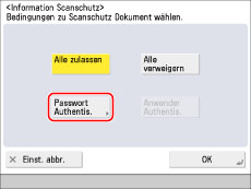 Wählen Sie die Bedingung für die Scanschutz-Informationen. Als Beispiel wurde [Passwort Authentis.] ausgewählt.